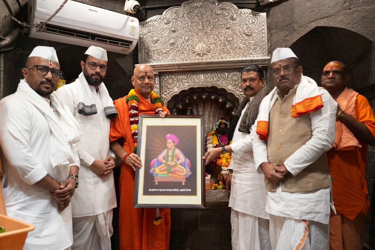 आळंदी मंदिरात आचार्य गोविंददेवगिरी यांचा संस्थान तर्फे सत्कारही